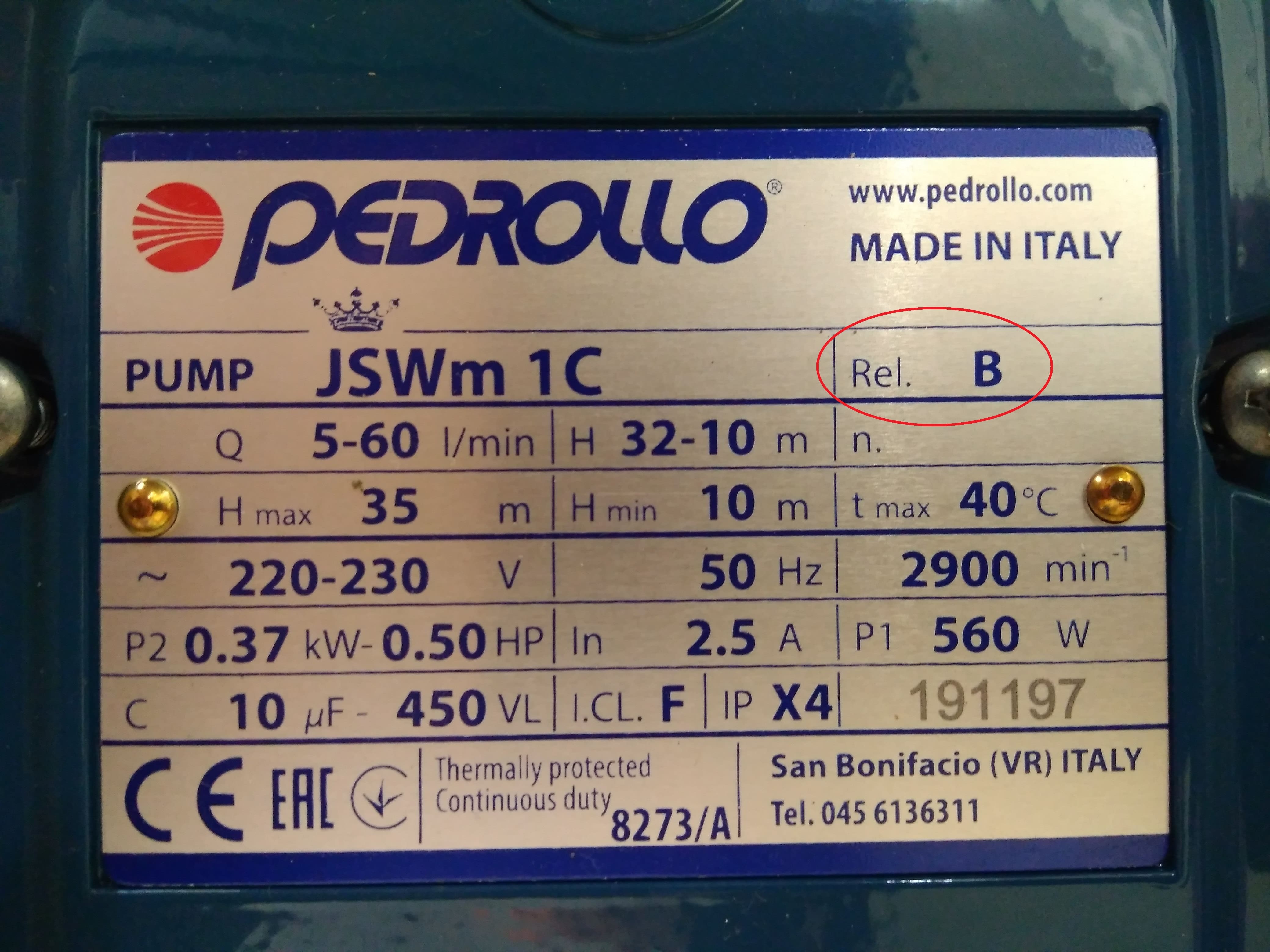 Hocu da zamenim samousisnu pumpu za vodu. Odnosno kupicu novu a staru cu da servisiram i da mi sluzi kao rezervna. Nisam nigde naisao na isti model kao ova dosadasnja koju koristim. Verovatno se taj model ne proizvodi vise. Naisao sam na skoro istu ali jedna oznaka na pumpi je razlicita i pitao bih nekoga ko se razume da li su dve pumpe sustinski iste. Oznacio sam na slikama razliku. Na jednoj je oznaka "Rel. A" a na drugoj "Rel. B". Da li mi neko moze reci sta to znaci i da li su to sustinski iste pumpe? Unapred hvala.