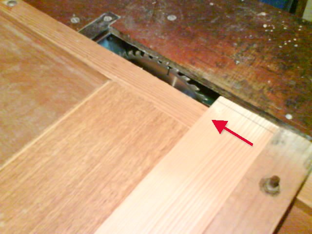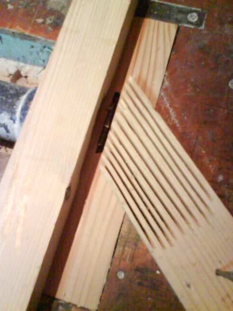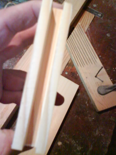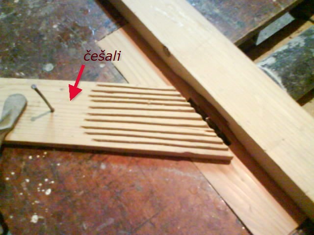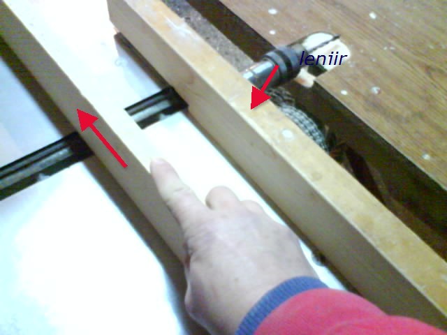 stavljamo lenjir i češalj(feder) koji pravimo od drveta koji će pomoći da drvo dok guramo preko cirkulara lepo prianja uz lenjir i radi svoje bezbednosti