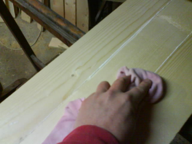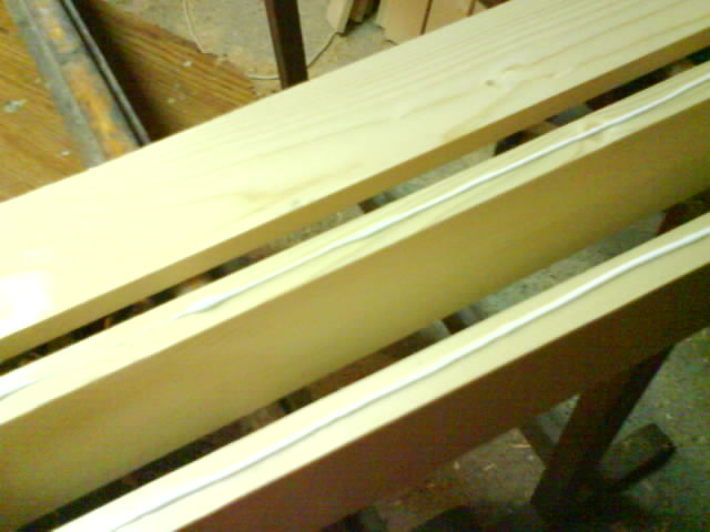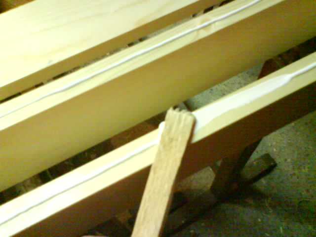 kad prislanjamo svaki komad mrdnemo malo levo desno da lepak pređe i na drugo parče drveta posle neće tolko proklizavati kad budemo stezivali stegačima