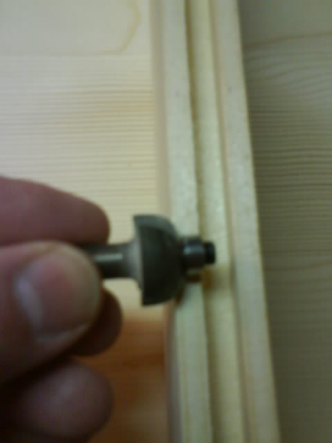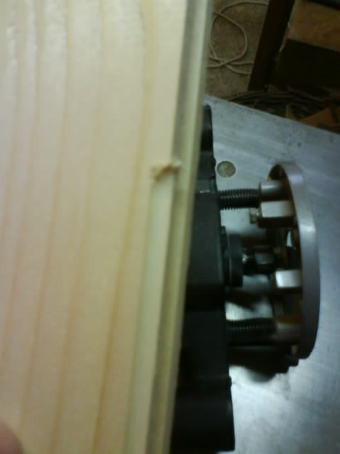 naštelujemo glodalo na dubinu od 10mm i da reže po sredini drveta i radimo probmi rez sa komadom drveta