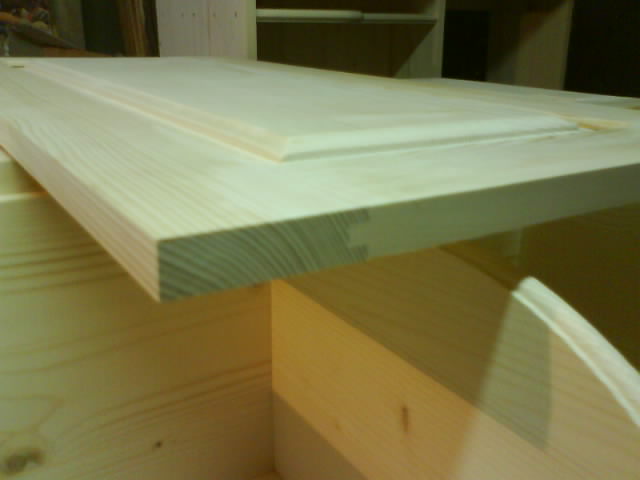 Možda je malo karakteristična ispuna, taj profil bi se vjerovatno mogao napraviti na profesionalnoj stolnoj frezi, odgovarajućim frezerom. Ja sam se ipak malo pomučio, radeći to u više faza cirkularom i ručnom frezom. Inače zahtjev domaćice je bio, što manje profila i frezovanja, da se lakše može brisati, nadam se da sam uspio u tome.