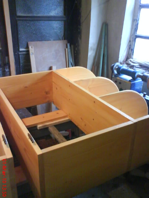 I razlika je u pričvršćivanju ispune, odvojena je od rama i pričvršćena lajsnama od tanke šperploče, najsitnijim upuštenim šarafima što sam našao.