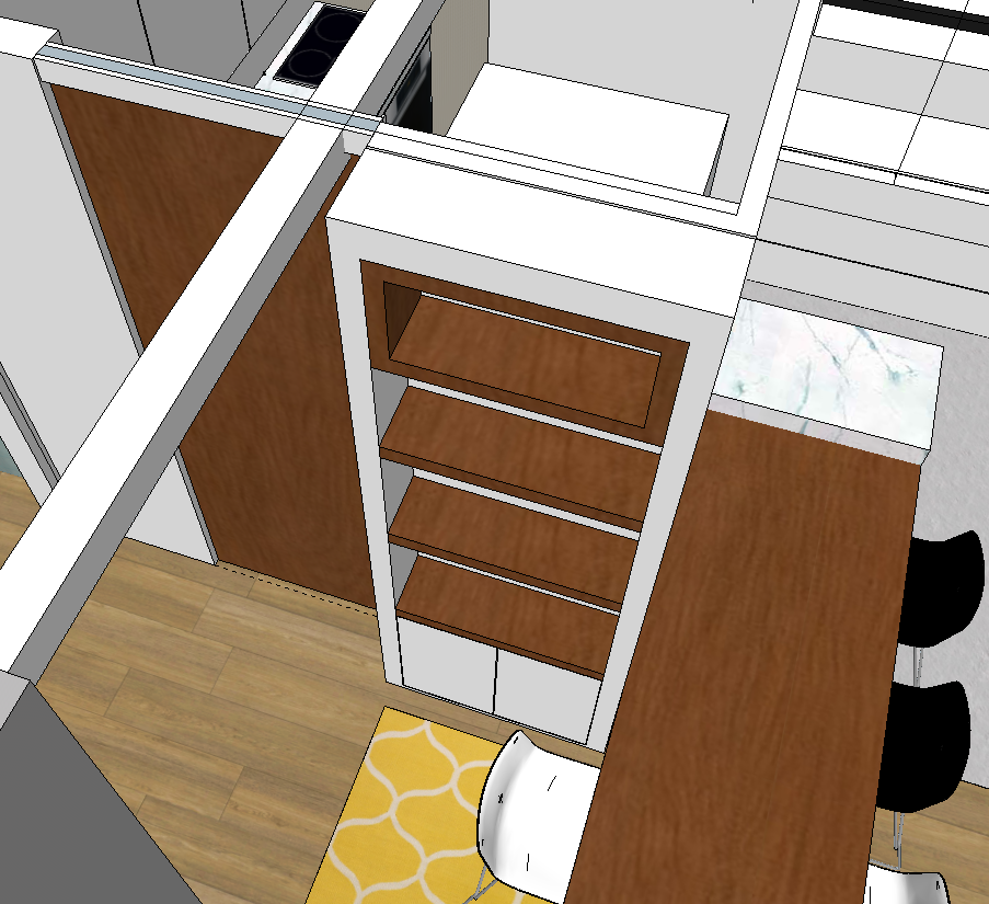 Moja ideja je da se na zidu iza izvuku potrene instalacije na mestima gde su police na sredini, a da se na sami policama sa donje strane napravi otvor za sijalicu, i za zadnje strane probusi rupa u polici za taj strujni kabal do samog otvora. Da li to zvuči izvodljivo ili ima pametnijih rešenje