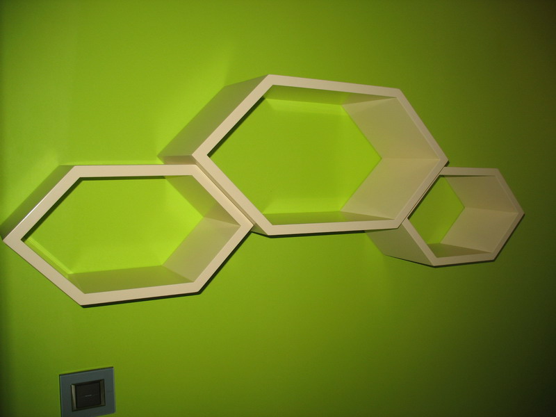 Pogledao sam malo pažljivije policu i vidim da nije pravi šestougao nego razvučeni. A ako je ono dole levo prekidač za svetlo - onda je vrlo mala polica.