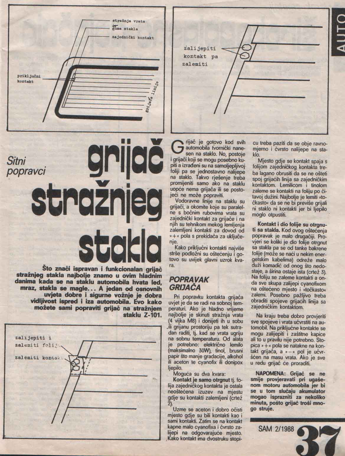 . Te tanke "žičice", koje se nalaze sa unutrašnje strane zadnjeg stakla, su zaista provodne žice - grijači, kako ih mi zovemo. One su "naslikane" jako preciznom četkicom (pinjelom) koje dođe u kompletu sa bočicom germanijum-oksida koji se jako lako nanosi i ne ostavlja nikakve fleke i slično. Međutim, ovaj oksid je jako skup. Možda jedna bočica (20 ml, a to dobro znaju elektroničari) košta oko 70-80 eura, tako da je jako neisplativo kupovati čitavo pakovanje. Khm khm.. jedino ako će neko da kupi pa da samnom i mojim kumom podijeli... i sa njegovom sestrom jer joj ne radi ni jedna "linija" i njenom kumom koja pati od pedanterije i njenim zetovima koji samo kukakju oko auta i mojim stricem kojeg boli ona stvar, ali ga je lako ubijediti.... i ostalima da ne gnjavim više. Možda će moći da nas potkrpi :hh