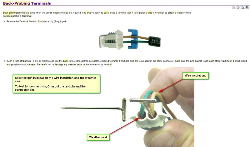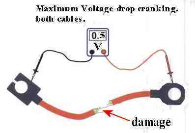 Ovako se pravilno meri pad voltaze na konektorima/terminalima. Moze I da se probije izolacija na kablu ,ali nije dobro, jer tu se moze ostetiti po neka licna I uvlacice se vlaga, sto ce dovesti do korodiranja kabla. Svako ostecenje na izolaciji valja premazati lakom za nokte. U slucaju da se koriste dva takozvana pina ( spajalica za papir ili slicno) treba biti veoma pazljiv da se ne dohvataju zbog mogucnosti kratkog spoja. Pametnije je je jedna pa premestiti ako treba.