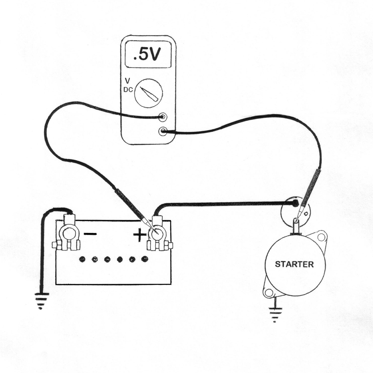 Usporeno verglanje je znak nedovoljne cirkulacije struje od B+ preko alnasera do B- ... Najefikasnija je provera padom voltaze koja ce pokazati ako imate problem sa kablovima I spojevima ( korozija ,nedovoljan kontakt).Test se vrsi pri verglanju .Koristi se digitalni voltmeter.Baterija/akumulator treba da bude puna 12.4-12.6v. Pocetna merenja se vrse na olovnim stubovima akumulatora I na navojnom stubu alnasera ili kucista alnasera ( znaci ne na kablobima /klemama I navrtkama/srafovima ) .Ako se ustanovi problem onda se vrse detaljniji testovi izmedju klema,klema I stubova I t.d.. Ako je sve u redu merenja ce pokazati ne vise od 0.25v na pozitivnoj strani , a na negativnoj strani I manje.Da napomenem ,masa alnasera na novijim vozilima je ditektno vezana sa kucista alnasera na motor (bez kabla ), tako da povrsina I srafovi gde se montira alnaser treba da budu cisti. U slucaju da voltaza pokazuje vise od 0.5v (moze biti I vise 5.0v , 7.5v ,sto je vise to je losija veza) bilo gde ,a posebno na negativnoj straini ,onda je problem sa kablom ili spojevima. Evo nekoliko prikaza. Napomena: U ovim diagramima se pokazuje spajanje voltmetra samo na pozitivnoj ili samo na negativnoj strani. U ovim slucajevima sva merenja na pozitivnoj strani vam pokazuju koliko se volti izgubi od postojecih 12.5v. Znaci , ako je izmereno 7.5v ostalo je 5.0v za alnaser, a treba 12.5. A.ako bi ste spojili negativan kabal voltmetra na B- , a pozitivnim kablom merili na pozitivnoj strani, onda bi ste dobili tacnu voltazu koja dolazi do te tacke testiranja (recimo dobili ste 10.0v i fali vam jos 2.5v za pravilan rad).