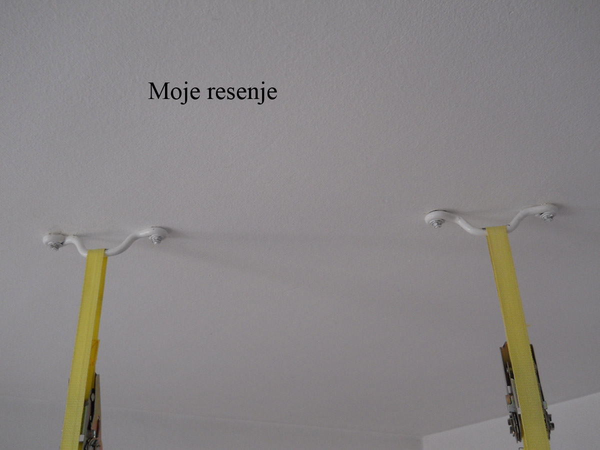 Hm, a sto za plafon ? Samo bi betnski plafon sa ankerima ili celicnim tiplovima bio bezbedan za tu namenu a opet postoji rizik od ozbiljnih povreda. Ukoliko popusti sraf, vratilo udara ili u nos ili vrat ...