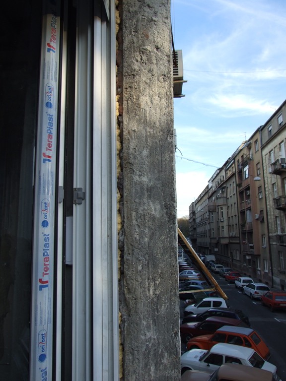 malter ,beton ili lepak za plocice zavisi od potrebne debljine pa na to se montira okapnica. znaci od prozora prema ivici fasade moras imati pad proveri libelom . uslucaju da tije sva "stolarija"menjana onda sigurno nemas pa se mora izliti ili su postojecu razvalili prilikom vadjenja starih prozora .znaci od prozora do ivice fasade celom duzinom otvora prozora inace ce ti voda podlivati pod prozore i prodirati unutra :tup :tup :tup