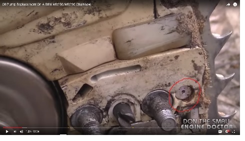 Imam motornu testeru Stihl oko 6 godina. Nije mnogo koriscena, oko 20-30 mh. Nije koriscena zimus oko 2 meseca i kada sam pre 10 dana uzeo da naostrim lanac iz plasticne navlake za mac je iscurila solidna barica ulja za lanac. Malo sam guglao i skinuo mac i lanac i ustanovio sam da ulje curi pored zavrtnja na slici. Vidim da taj zavrtanj ulazi u rezervoar za ulje lanca , ali ne znam kako se priteze, ako je to potrebno, a ne znam ni za sta sluzi. Do sada nisam uocio da curi ulje, pa me interesuje sta to moze biti i da li treba nesto preduzeti.