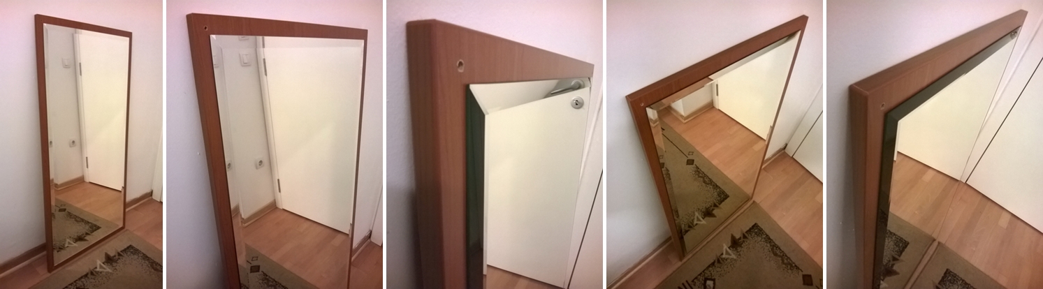Naime, treba da zalepim ogledalo na komad univera i da ga montiram na zid.. Univer je dimenzija 55cmx110cm, ogledalo 50cmx105cm, debljine 4mm, sa fazetama od 20mm, ostavljeno je da se univer vidi po ivicama po 25mm preko ogledala..