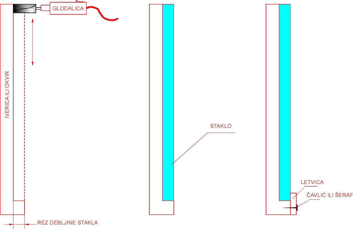 Pozdrav! Trebaš izrezati profil iverice u obliku slova "L" s unutarnje strane, te prisloniti staklo i postaviti letvice koje će ga držati. to je sve!