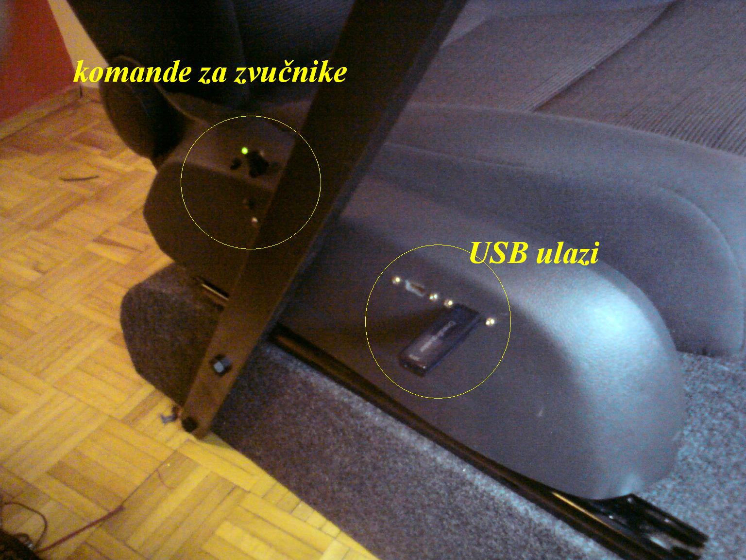 komande za zvučnike,ulaz za slušalice i USB-ovi