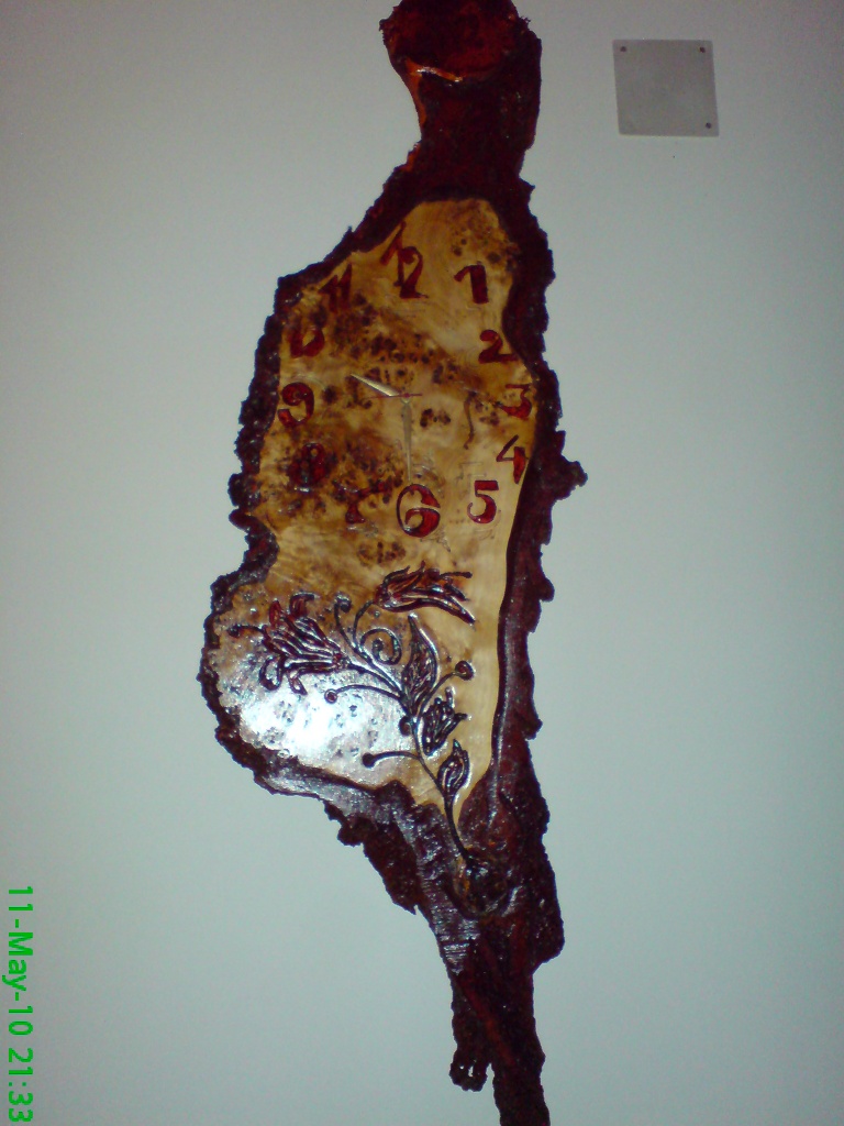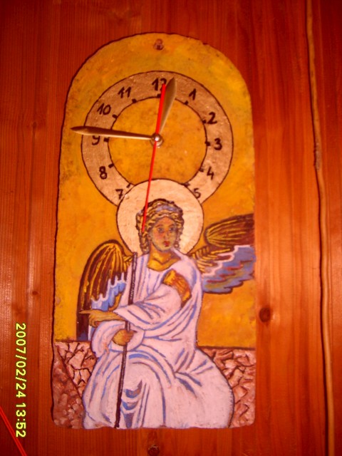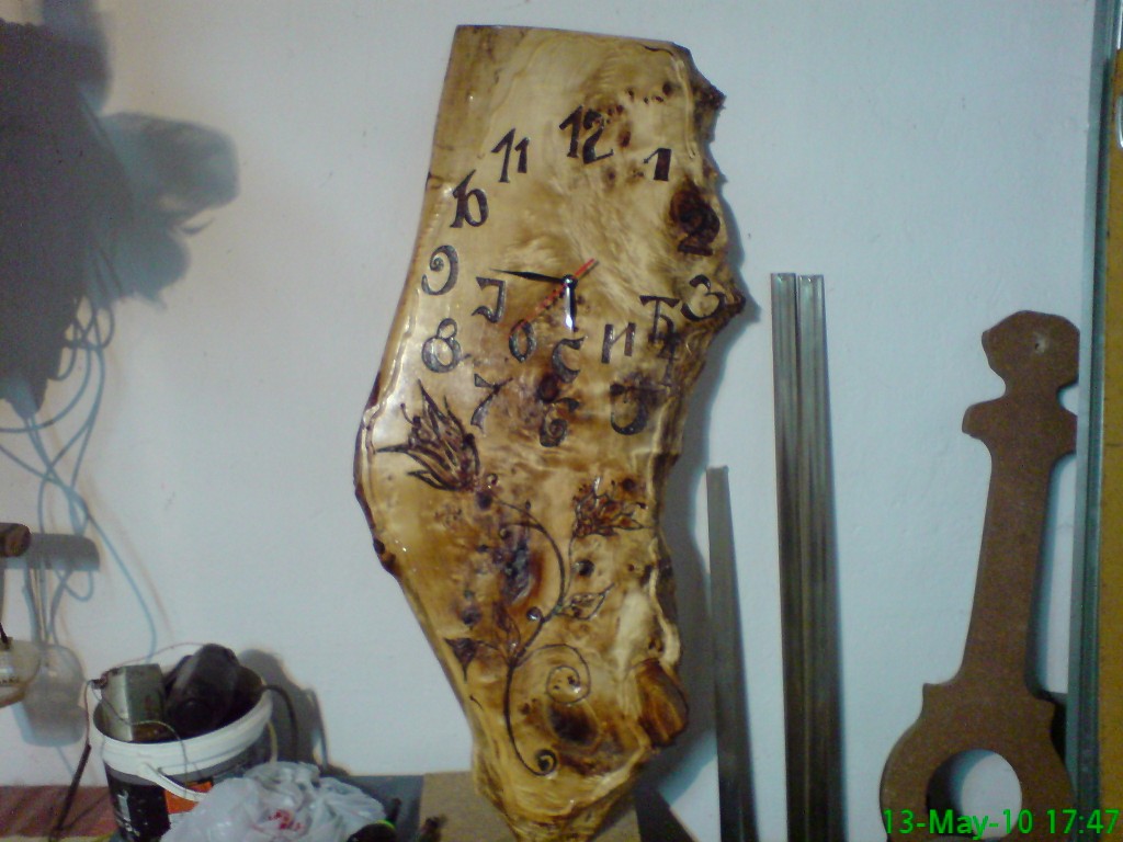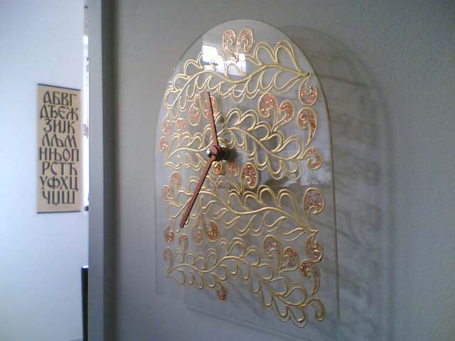 Moram vam priznati da sam razočaran što dosad nisam naišao na ovaj FENOMENALAN forum! Ja mislim da su satovi prelepi a što je najvažnije jednostavni za izradu moraću da isprobam tvoje metode. Inače i sam radim neke satove i potrudiću se da u skorije vreme postavim slike na forum da bi mogao dati kolegama i koleginicama na procenu a i posetiocima. Inače ja sam dosad gravirao staklo nisam koristio boje a najviše volim da koristim drvo pa na njega običnim indigom prenesem željenu sliku i onda po konturama prođem sa lemilicom i dobijem linije koje su lepe braon boje ( u zavisnosti od dveta budu svetlije ili tamnije) i ja najviše volim da prođem samo sa bezbojnim lakom. Posle lakiranja probušiti na željenom mestu i postaviti mehanizam! :nes
