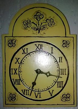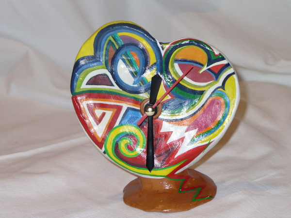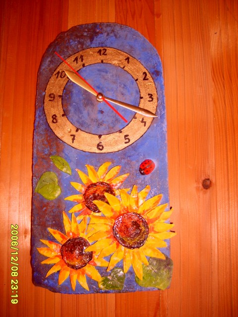 Evo jedan (ne) zidni sat.Kacim sliku ovde jer nisam nasla slicnu temu.Ovo je moje kume ruku delo.Napravila ga je jos na pocetku kursa grncarije.Sta kazete?