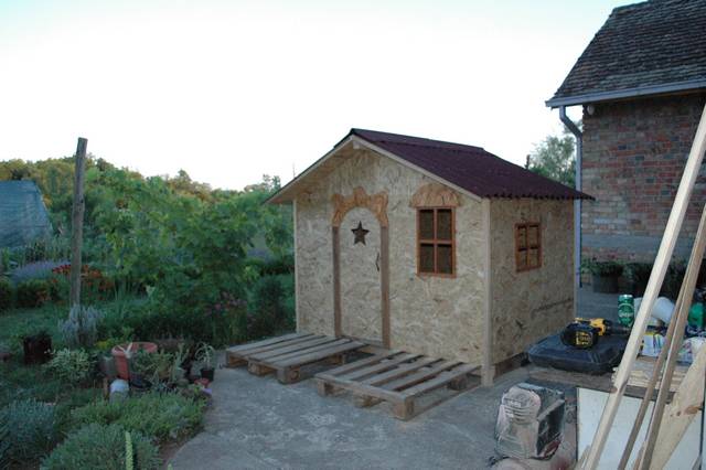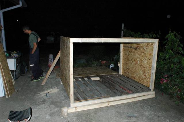 Da ne detaljisem bez potrebe jer slike sve govore, materijal -palete,osb table,stafne 5x8,ondulin table za krov i kojekakve lajsne i letvice.