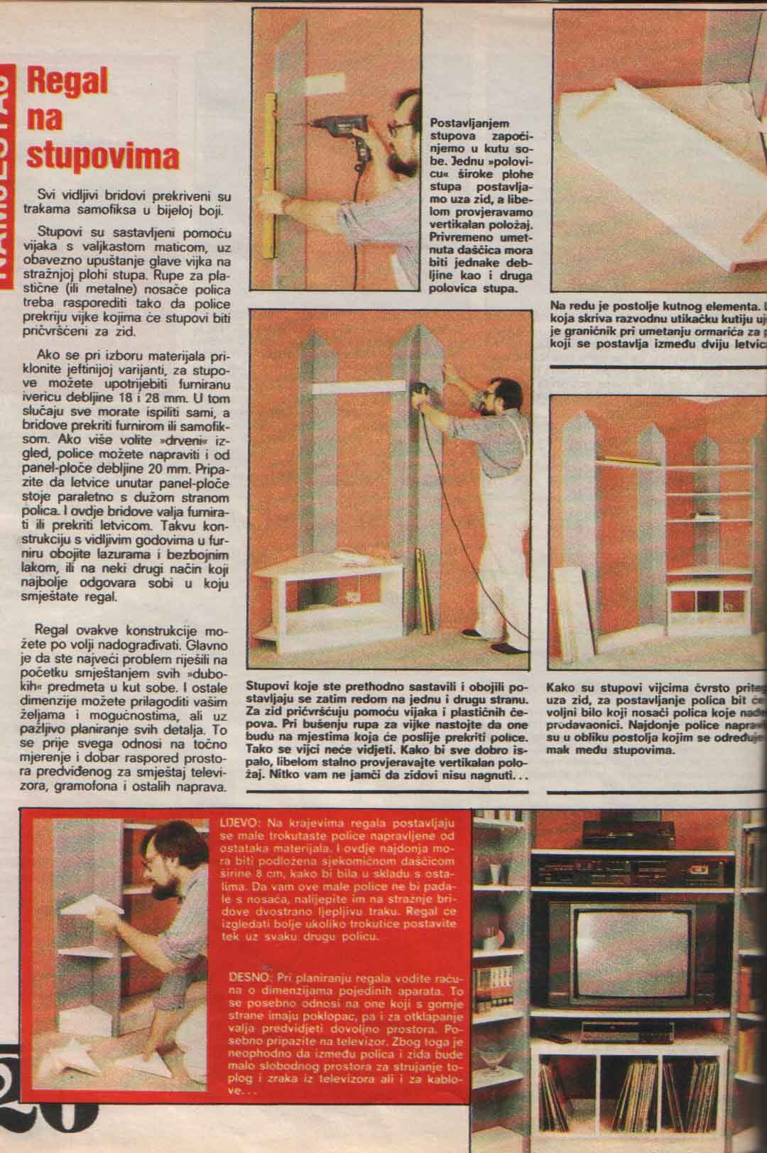 Dimenzije 84*200 cm. Treba da budu otvorenog tipa, bez leđa-lesonita. Bela boja. U jednom delu treba predvideti mesto za CD-ove.