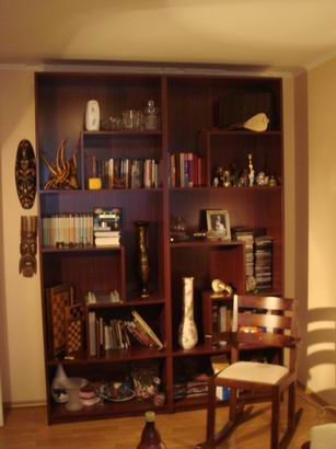 Evo i moje male biblioteke ( osim knjiga ja sam tu smestila i kojekakve drangulije ) Biblioteku smo sami pravili ( uz panele secene po nasem nacrtu ) Kostala je troduplo manje od cene koju su nudili da mi je naprave