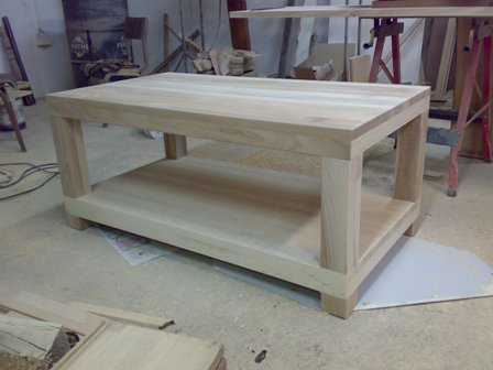 Evo kako izgleda sto za dnevni boravak od masiva koji sam pripremio za farbanje odnosno bajcovanje .Gornja ploca i nogice bajcuju se u wenge a donja ploca u bez kad zavrsim sa bajovanjem i lakiranjem bice uslikano i prezentovano pozdrav Radenko