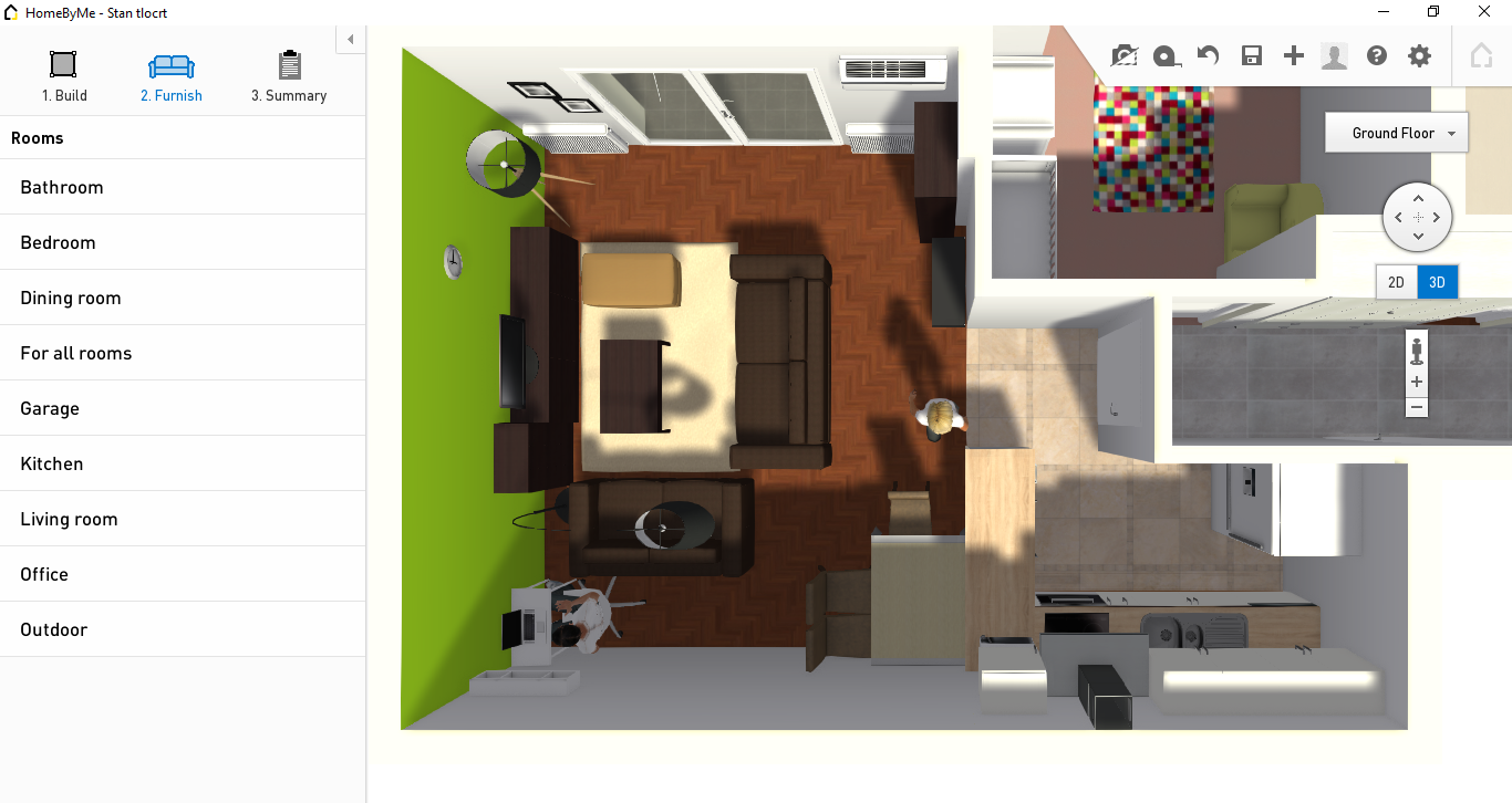 Pozdrav svima. Nadam se malim sugestijama. Naime, posto mijenjam stan, a posjedujem vec dio namjestaja, sada pokusavam uklopiti ovo sto imam u prostor u koji se trebam preseliti. Meni je najvise sporna dnevna soba, koja je povezana sa kuhinjom. Kuhinju cu kompletno opremati od pocetka, tako da tu imam prostor za kreativnost. Za dnevnu vec posjedujem dva kreveta, tepih, 3 police, Tv, koje nekako trebam smjesiti. Evo ja sam u programu homebyme napravio tlocrte sa adekvatnim dimenzijama namjesta, kako sam ja to osmislio, e sada, ne znam kako jos bolje da iskoristim prostor? Mozda neko ima bolju ideju? I kuhinja se moze preurediti ukoliko postoji bolje rjesenje.