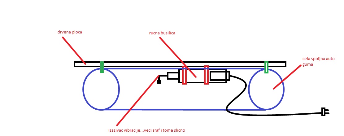 Pa, bio je nas covjek, dakle gde vam je entuzijazam ili inovativnost, spremnost da otkrijete i probate, no da ne ispadne da vam samo tupim evo vam jedno resenje za vibro stol: kupite najeftinije slajferice tipa ajnhel ili slicno, okrenete je naopacke, na nju pricvrstite metalnu plocu (ne preveliku ili ode masina u kantu) i gore stavite kalupe, i eto vam vibro stol.