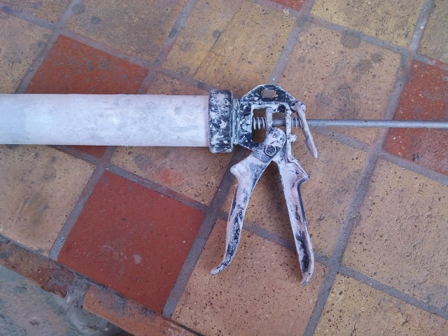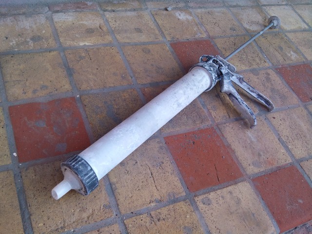 Pistolj je sav od aluminijuma osim mlaznice i klipa koji gura materijal.