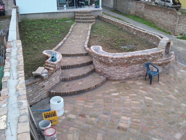 Sto se tice otpornosti ove stare (svapske) cigle ona je mnogo kvalitetnija i tvrdja od nove redovne cigle tako da ja verujem da nece doci do nikakvog propadanja od vremenskih uticaja. Planirano je lakiranje ali taj deo necu ja raditi nego gazda pa kad cujem nesto vise cucete ovde i detalje sto se toga tice.