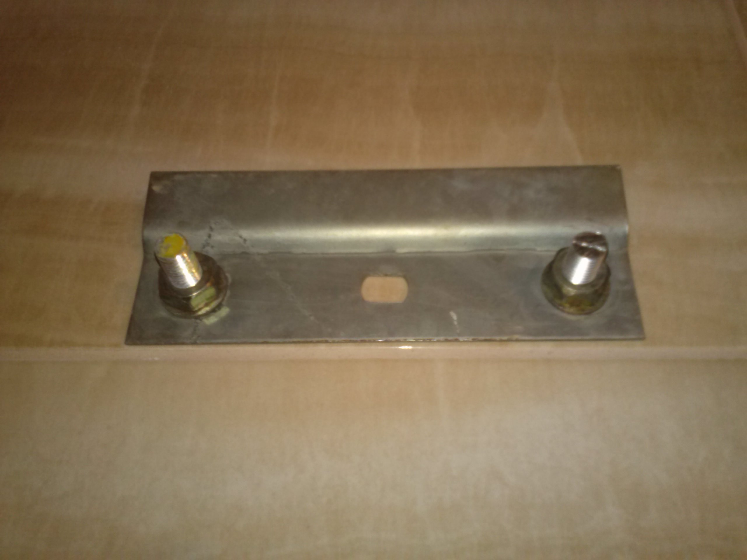 2. Zavariti na gornjem nosacu gvozdene sine (na mesta gde su rupe za srafljenje u zid) koje ce da vode do plafona, biti savijene pod pravim uglom u cosku i postaviti jos po jedan sraf na obe sine, plus standardna dva srafa na nosacu u zid.
