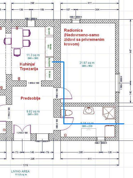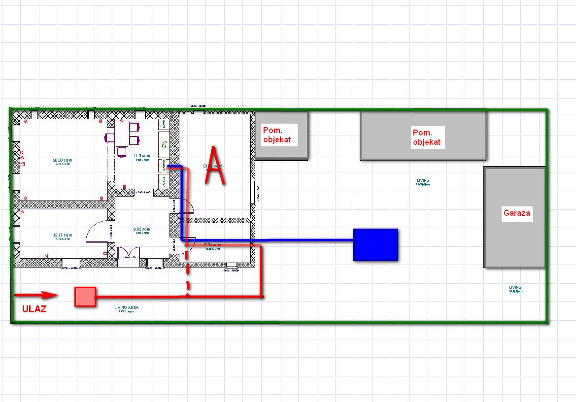 Plava linija - kanalizacija ( nema jos cevi, pa se jos moze promeniti)