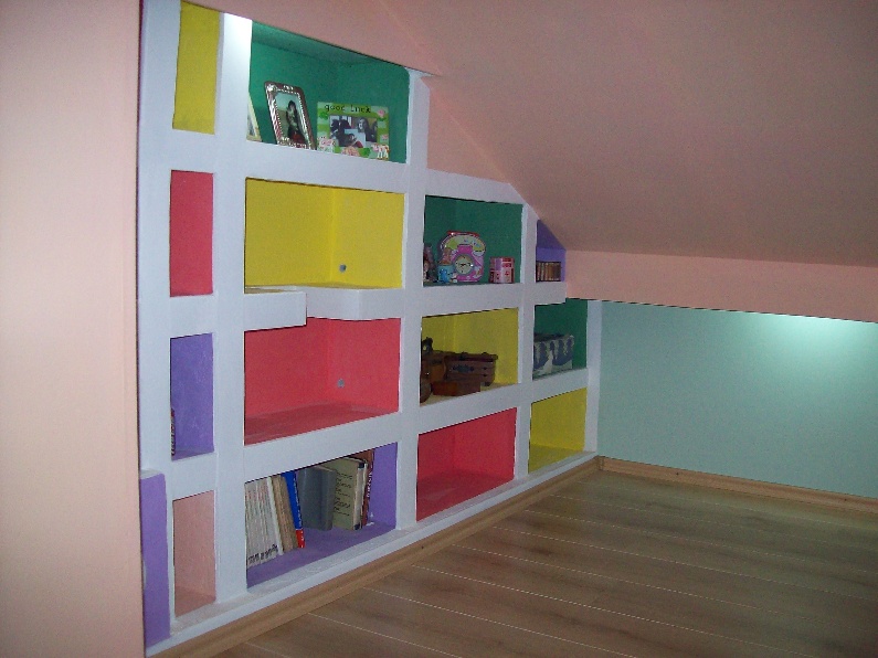 Mali stan od nekih 30-tak kvadrata sam vremenom pretvarao u što iskoristiviji prostor,prva ideja je bila otvaranje izlaza na tavan koji je katastrofalno nizak i od zajedničkog tavana cijele zgrade koja ima krov na četiri vode mene su zapale tri proklete vode,najvisočija tačka je oko 2 metra,prva ideja je bila popoditi šipodom tavan,uraditi izolaciju i pokovati lamperiju tako da dobijem čist tavan za ostavu,to je i urađeno prije 3-4 godine.I vremenom se javlja ideja da se otvori badža da dobijem na visini i da maleckoj napravim dječiji kutak.Stara lamperija na kosinama je dobro odležala,bilo je dovoljno pojačati je sa šarafima i preko nje je išao regips.Nije nešto ali kao i uvijek volim podjeliti svoj uspjeh sa drugima pogotovo što sam sve radio sam i završio sve za nepunih mjesec dana.Možda neko od vas nađe neku ideju za sebe a siguran sam da vas ima kojima tavani čuče bez veze.Da vas ohrabrim,na tavanu nema ploče već stare grede 20-24 cm preko kojih je bila izolacija od pilote,zato je sve trebalo očistiti,i poprečno gredama udariti šipod a poprečno njemu laminat.Iduće godine planiram drugu badžu jer imam mogućnost za mali wc sa umivaonikom ali o tom potom