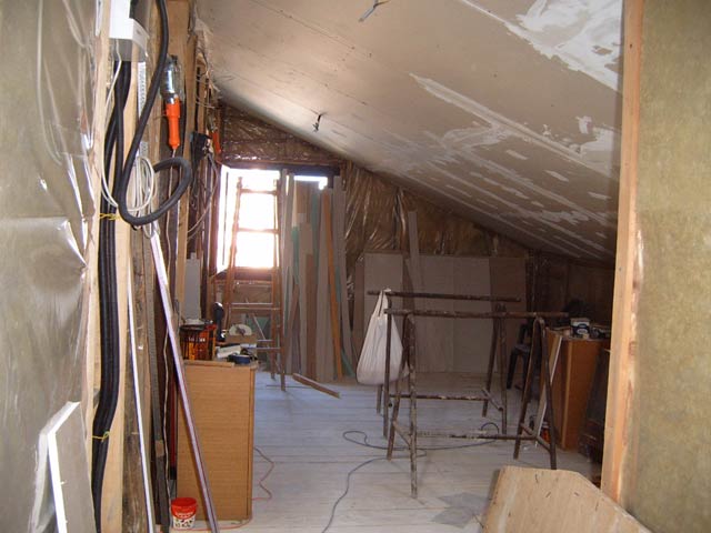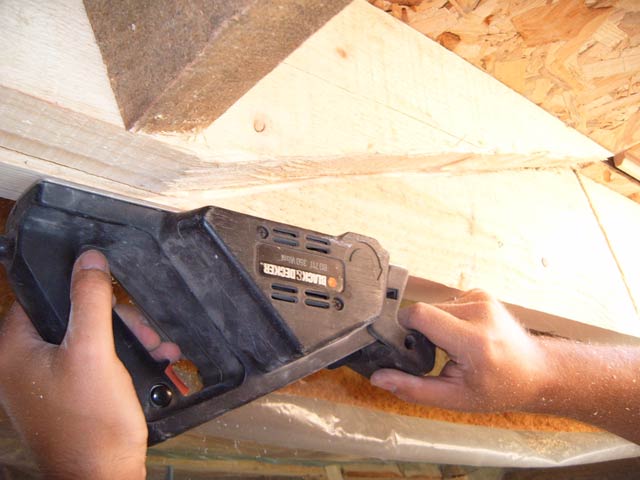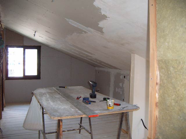 Do sada smo morali da rešavamo gomilu problema. Počevši od banalnih, da smo prevideli da na pojedinim mestima nedostaju letvice na koje treba učvrstiti gipsane table, preko sitnijih neravnina koje smo rešavali podmetanjem letvica ili kartona raznih debljina do situacija kada smo morali da skidamo najlon kojim je pokrivena izolacija i da potom rendišemo pojedine grede celom dužinom. Negde smo skidali i po više od 3 cm. Izgleda da grede nisu bile sečene na istu debljinu ili se nisu sušile istim intenzitetom. Šta da se radi.