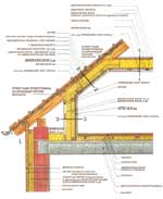 Crep, letva, al. folija, dascanje (OSB ploce, patos ili sl., parna membrana (paropropusna folija/sekundarna zastita od prokisnjavanja), izolacija (stiropor ili staklena ili, najbolje, kombinacija oba tipa), parna brana (obicna PE folija za plastenike, mada na trzistu postoje i specijalne folije za ovu namenu), zavrsni sloj (gips, lamperija, dr.).