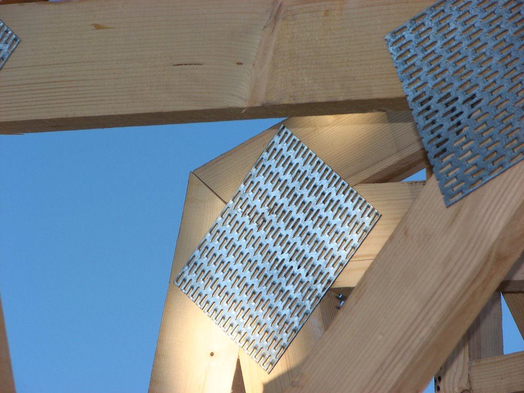 Jastuci, to je i za mene misterija. Kada se radio krov nisam bio prisutan (put u inostranstvo, a majstora sam dobio po dobroj preporuci). Kada sam ga pitao isto, odgovor je bio - "ne smeta to ništa".... Jastuci nisu ankerovani u ploču, ali sam naknadno kupio spojne ploče (kao na slici), i pokucao ih kako na sastavima sa jastucima tako i na mogućim sastavima krovne konstrukcije sa gredama.