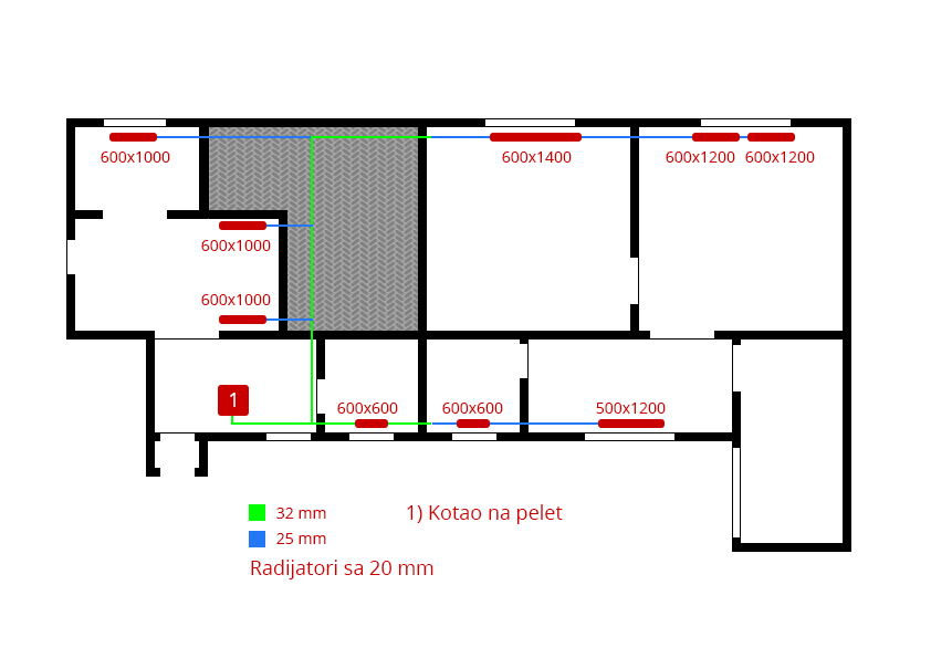 Pozdrav svima,hteo bih da uvedem centralno grejanje na plin. sto se tice radijatora kako stoje stvari sve vise mislimo da kupimo neke polovne stari tip (tucane) pa da ih ofrabamo i malo sredimo jel sudeci to iskustvu drugih ljudi iz mog okruzenja kazu da su mnogo bolji nego ovi moderni panelni radijatori...no voleo bih da cujem nesto i u vezi toga...prvenstveno me zanima da li neko moze da pogleda moj crtez kuce (plan) i plan cevi kuda bi trebalo da prolaze a ako neko vidi neku gresku u tome bio bi jako zavalan ako bi me usmerio ka ispravnom...sto se tice mene najvise intresuju cevi, budzet mi nije nesto veliki znaci sto skromnije a opet da to ne bude da za dve godine moram nesto opet da radim. Mislili smo da zbog problema sa mnogo vrata stavimo cevi gore do plafona (jeste estecki to malo ruznjikavo ali mnogo manje cevi ide nego da stavim dole pa da izbegavam vrata i kruzim po sobi) to je z pocetak.