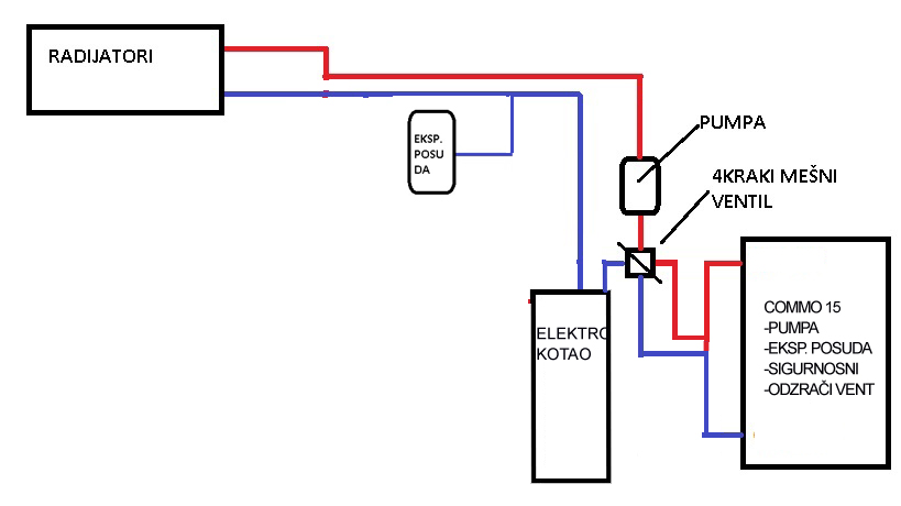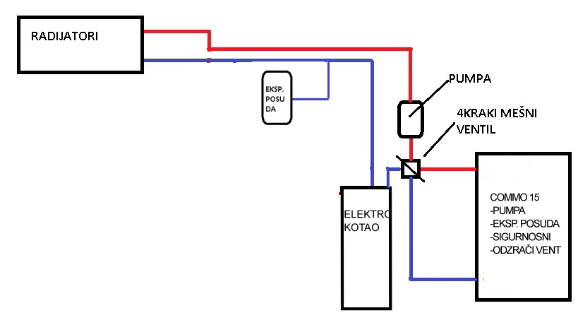 Treba biti pametan i ugraditi ono što je u prvi mah neophodno da bi bila ispravno izvedena hidraulična instalacija, a tek tamo negde u budućnosti može da se razmišlja o "kićenju jelke" sa raznoraznim automatikama i ostalim tricama. Pa vi ugradite četvorokraki ventil i otvorite ga do kraja, to je isto kao i da ga nemate, ali ga ipak imate, ali imate pravilno izvedenu hidrauličnu instalaciju. Moći ćete da eksperimentišete sa položajima četvorokrag mešnog ventila i videti šta vašem grejnom prostoru najviše odgovara, ovako sistem je zakucan, a vama ostaje samo puni i teraj, samo neka cepa!