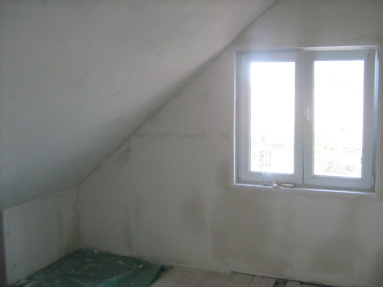 Посао је напредовао од тад, али нисам фотографисао. Чекам мало сунца па ћу и то да овековечим. Све у свему од последњих слика сам одрадио кречење, монтирање прекидача и утичница, постављање стиродура 2 цм и ламината 12 мм, поставио собна врата и офарбао штокове. Остало је још само да поставим подне лајсне, а то крећем чим попијем кафу