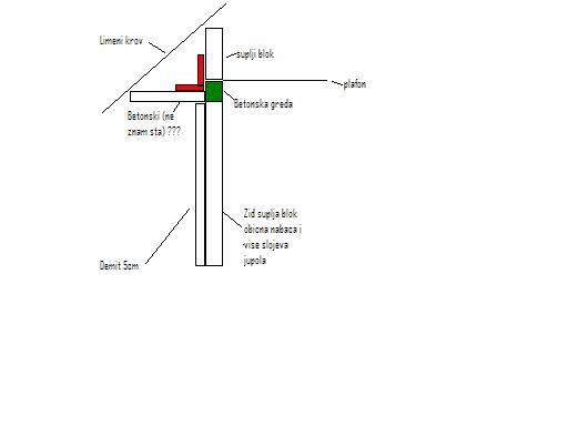 . Znaci sve se lijepi direkno za plocu - plafon, i za giter blok - zid. Spolja ce ici demit fasada 5 cm.