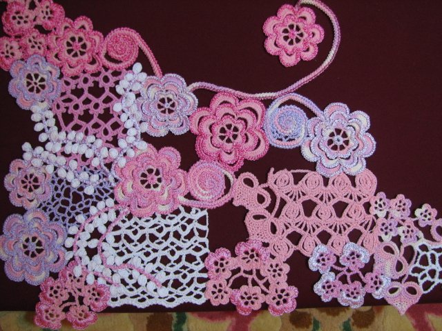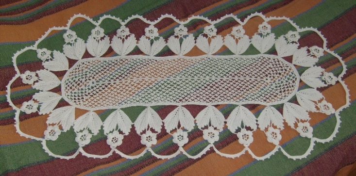 Privela sam kraju jedan nadstoljnjak u 'irskom fazonu', imajući šemu sa Picase ( standardno pojma nemam iz kog albuma! ) , ali sa prilično lošim kvalitetom slike pa je pomalo i bilo problema.Konac je 15, kukica 1mm, a dimenzije su mu 40sm x 75sm. Prema njihovom uputstvu trebalo je da bude oko 40x60 (konac broj 30 valjda). Spoljašnji završni redovi su mi predugački ( možda i oparam mada nemam taj običaj ) ali je tako pisalo.... Ima tu nekih neslaganja, bude li neko hteo da ga radi, staviću šemu i objasniti po neke bitne detalje.