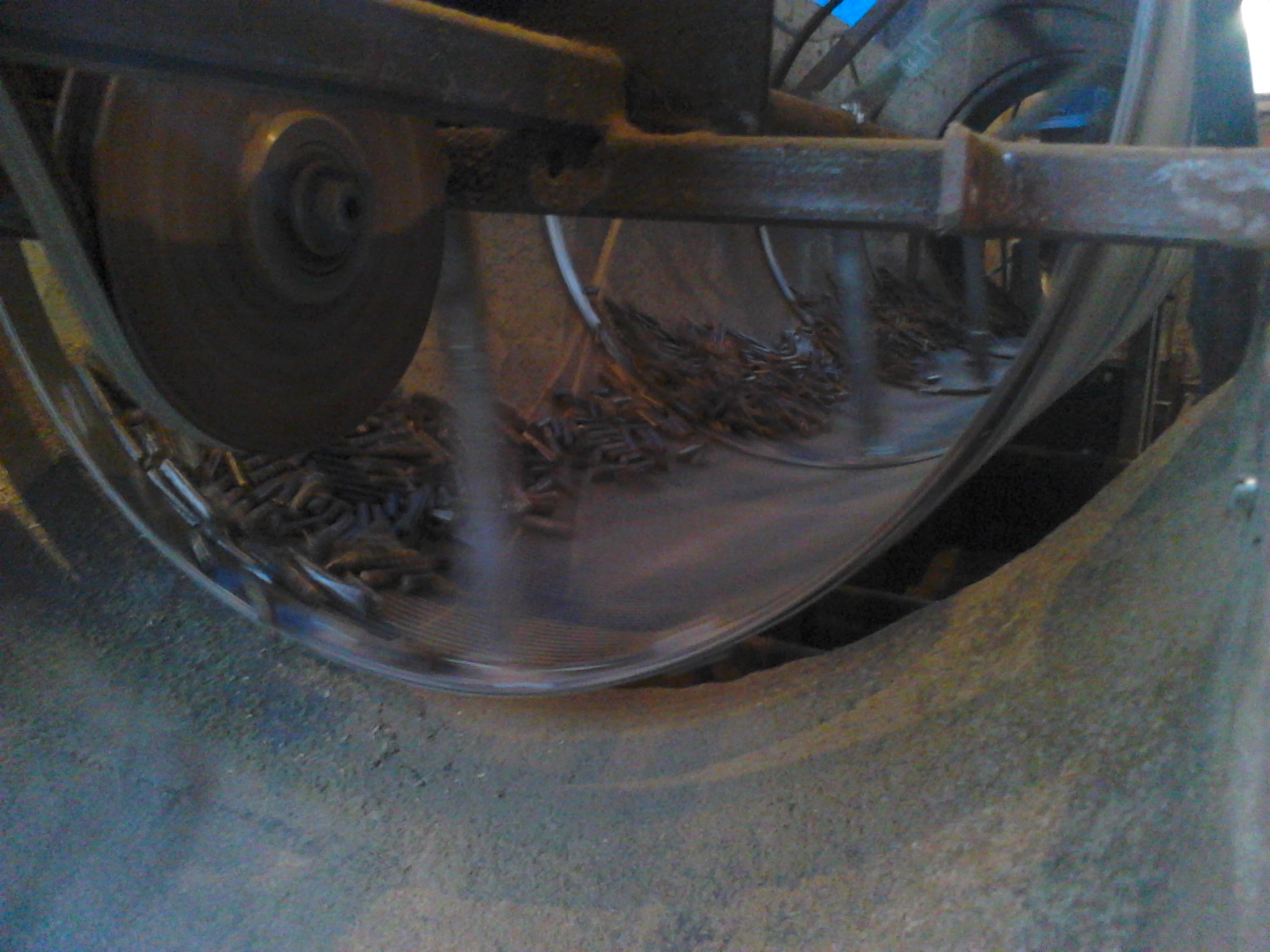 motor za pokretanje je 5,5 kw 1420 o/min, sa motora prenos je remen do osovine koja smanjuje obrtaje i prenosi i prenosi na lanac ( neke oznake 12 G) koji smanjuje obrtaje na potreban broj.