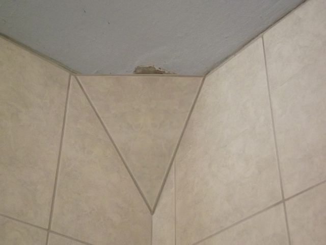Zašto to nije zatvorio jednom pločicom? Čine mi se dovoljno velike da se može izrezati trokut u komadu.Može se sa zadnje strane silikonom zalijepiti na postojeće pločice, pa zatim fugirati ili sve odraditi sivim silikonom.