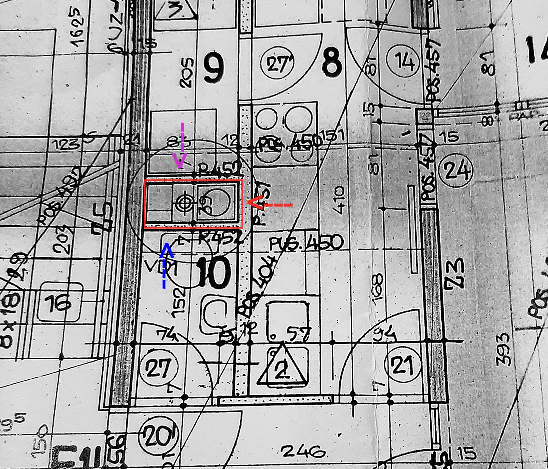 Problem je sledeci: neki komsija (barem jedan) je ocigledno iz kuhinje u taj zajednicki prostor izveo otvor za aspirator (oznacila sam na slici crvenom strelicom) i to toliko smrdi da je to strasno - neverovatne kolicine zaprski u najmanju ruku.