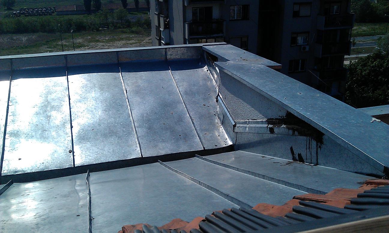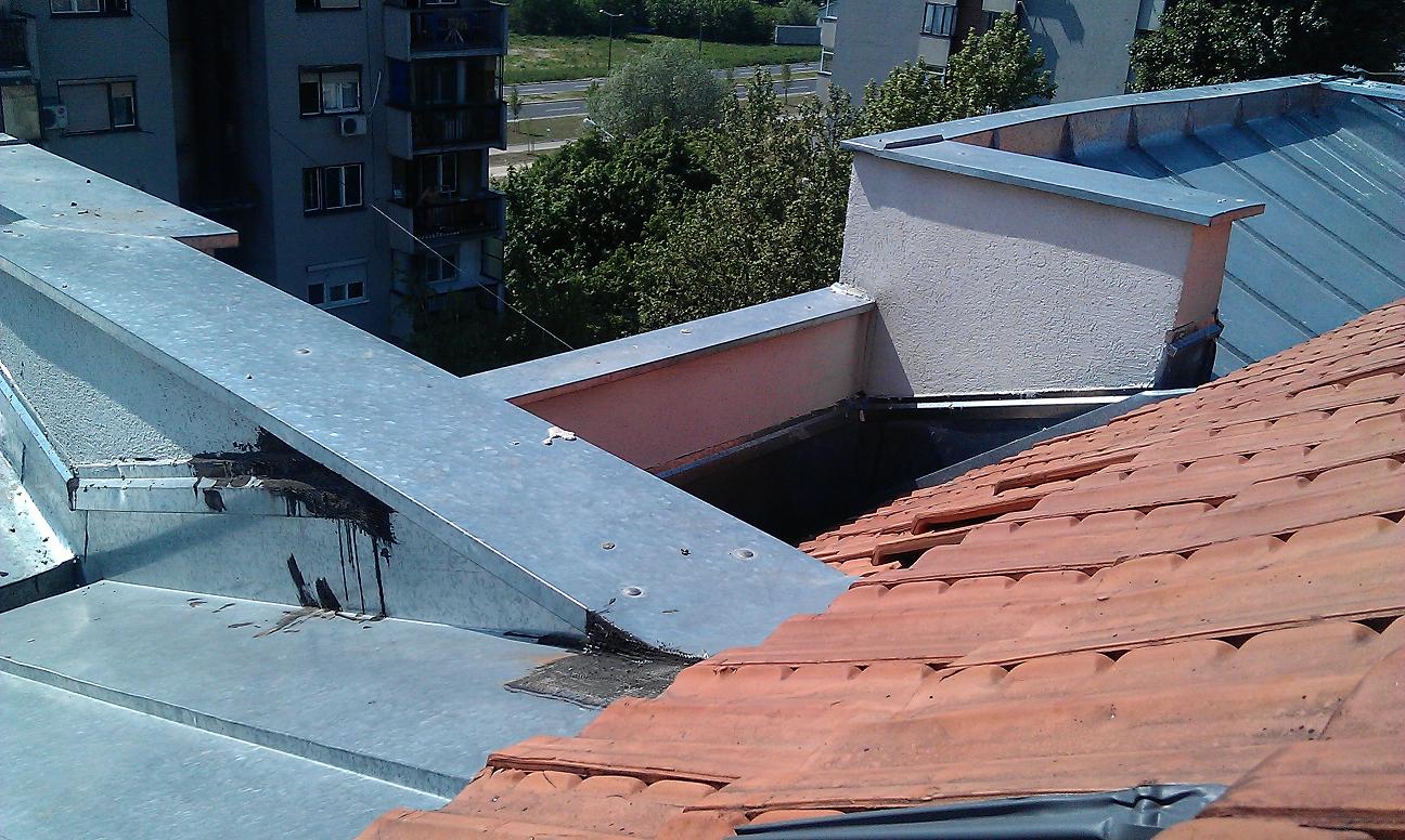 Imamo problem sa prokisnjavanjem krova, zgrada je relativno nova (2008). Kada se desi neki veliki pljusak, kao pre 10-tak dana recimo (u Novom Sadu) kod mene ovlazi plafon a kod komsije je poplava. Ja sam na 6-tom spratu a komsija ima duplex te su iznad mene njegove sobe ali voda mu probija u dnevnu sobu koja je na istom nivou kao moj stan.