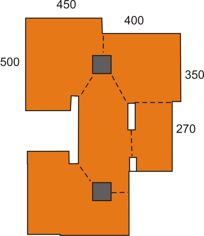 A ako je prostorija velika i nepravilna, da li je dovoljno ostaviti 2cm svuda ili bi bilo bolje "preseci" laminat nekom lajsnom? Prilozio sam sliku kakvog je oblika prostorija. Da li da presecem laminat lajsnama gde su isprekidane linije, koje su lajsne najbolje za to i da li je 2cm dovoljno razmaka?