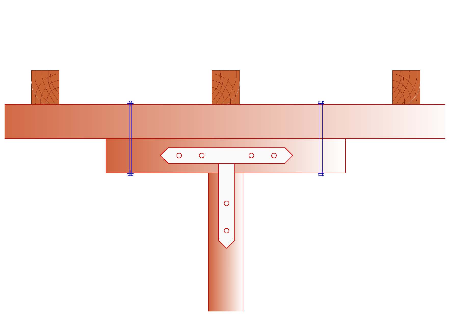 Nesme da se šrafi niti da se kuju ekseri paralelno sa vlaknima ne smatra se da je nosiva veza. napravite od čelika od fahova T element kojim ćetesa jedne i sa druge strane ostvariti vezu pod uglom stub jastuk.