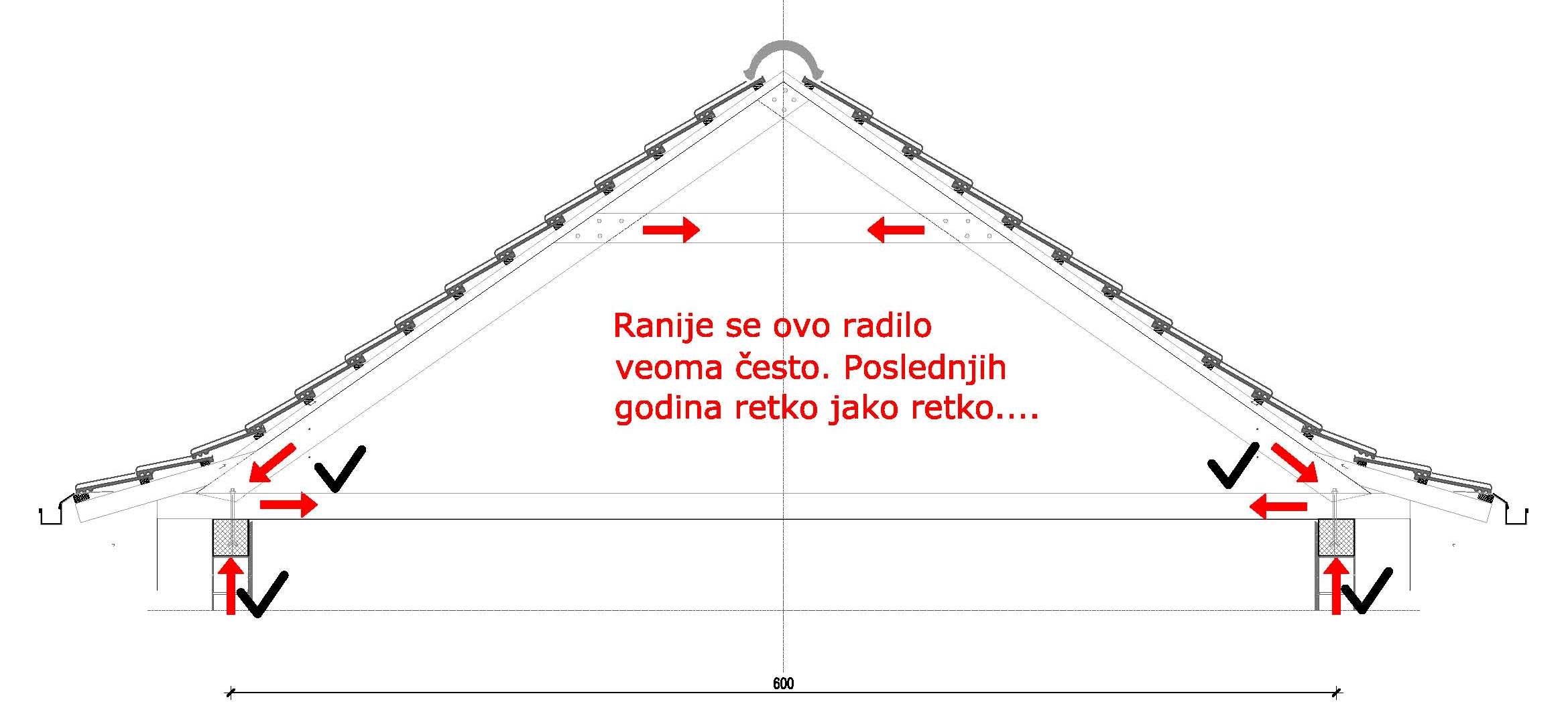 Kar mnogo časa nazaj se je poštetila fasada (takav način sidranja) jer je vijetar + ...posijedanje +.... izvuklo nadstrešak; fasadna obloga (cigla) popucala.