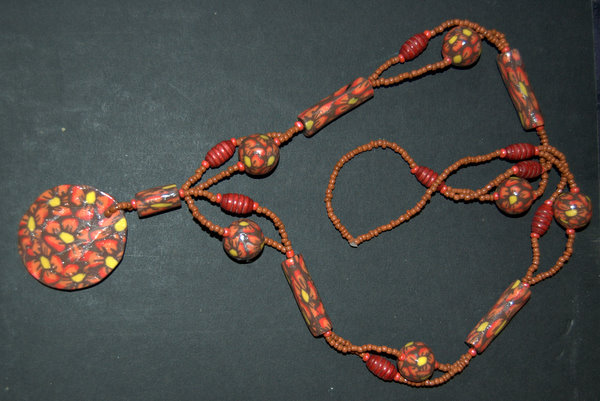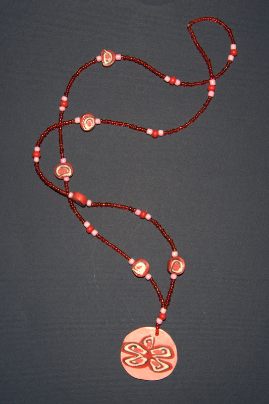 Baš mi se sve dopada. Odlične su ti kombinacije gline i perlica. Možda malo lošije odrađene crvene kuglice(pored crnih kiglica),minđuše, ili je to do slike?