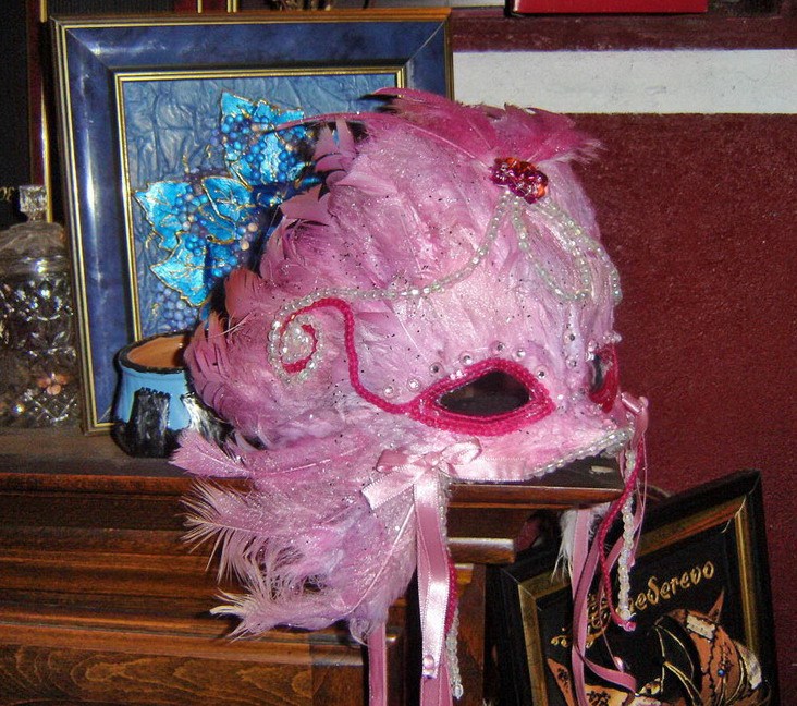 Kalup je plastican, kupljen, oblik koji samo prekriva oci i nos.... Pera....pa snalazim se, koristim perje od guske , curke, morke, pauna, golubova...u principu sta god mi padne na pamet ( odnosno sta nadjem), a bojim ih sama airbrushom, ..... pa nadam se da sam bila od pomoci.....
