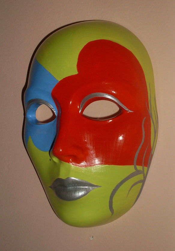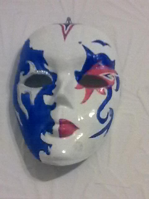 Da izlivam maske u kalup od plasike, pa kad se malo prosuse, odstranim visak gipsa , osmirglam , sacekam da se dobro osuse i nakon toga farbam, uglavnom akrilnim bojama.