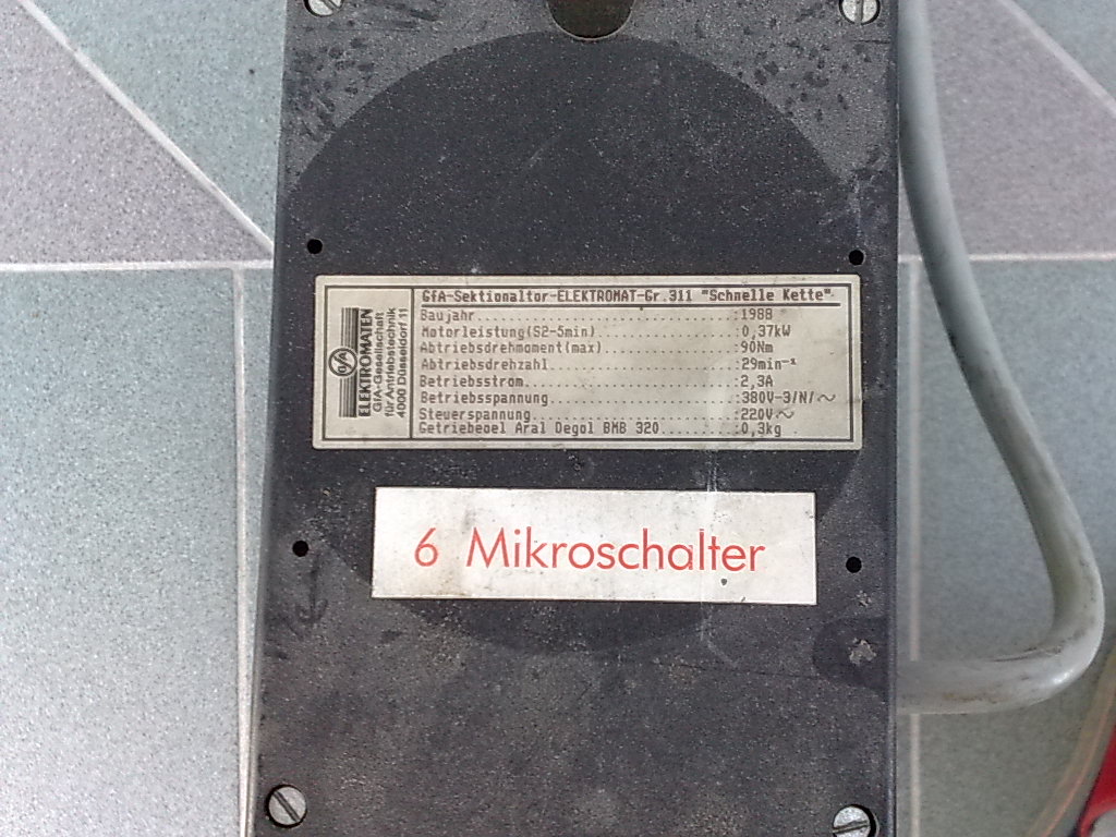 Motor sa tockicem, sajla ( duplo duza od duzine kapije), jos jedan tockic na drugoj strani, i dva mikroprekidaca.