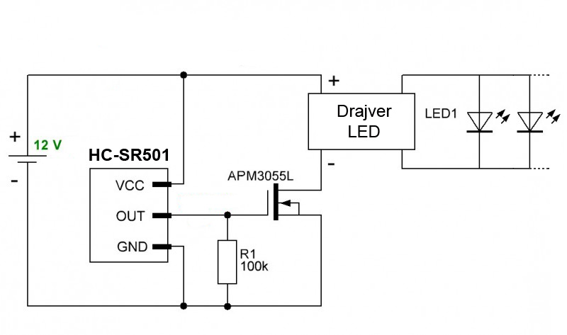 zanima me kako da povezem ovaj senzor pokreta (vidi att) sa led trakom, da se upali kada senzor detektuje pokret i da radi dok god ima pokreta? Da li ima neko semu neku?